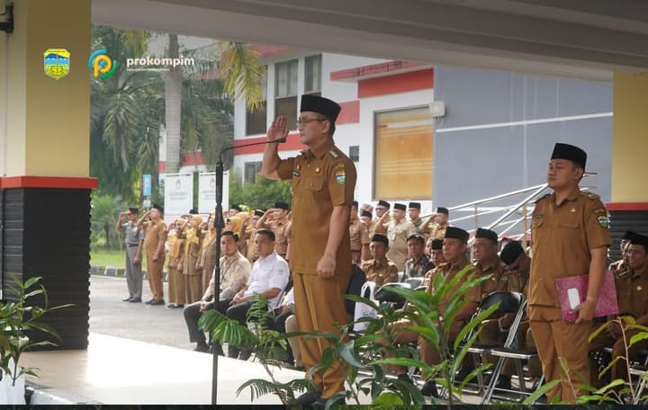 Bupati Tasikmalaya memimpin apel Senin pagi yang dirangkaikan dengan penyerahan apresiasi kepada Aparatur Sipil Negara (ASN) di lingkungan Pemerintah Kabupaten Tasikmalaya. Kegiatan tersebut berlangsung di Singaparna, Senin (2/3/2026).