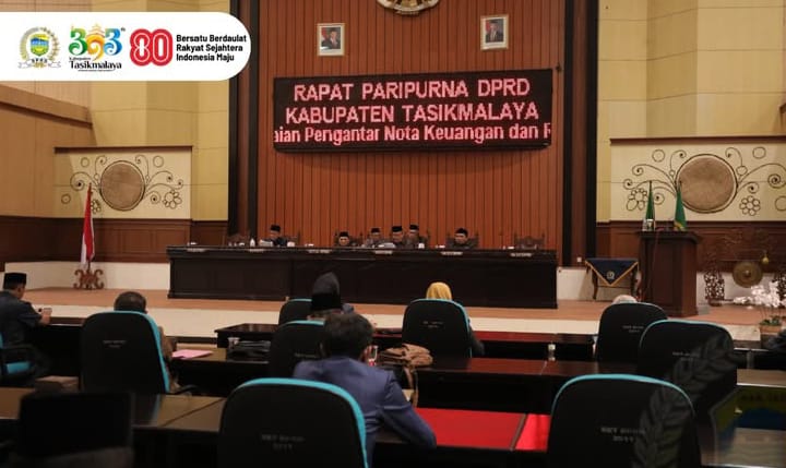Dewan Perwakilan Rakyat Daerah (DPRD) Kabupaten Tasikmalaya menggelar Rapat Paripurna dengan agenda utama penyampaian Pemandangan Umum fraksi-fraksi DPRD terhadap penjelasan Bupati Tasikmalaya mengenai Nota Keuangan dan Rancangan Peraturan Daerah tentang Anggaran Pendapatan dan Belanja Daerah (APBD) Kabupaten Tasikmalaya Tahun Anggaran 2026 yang bertempat di gedung DPRD Kab.Tasikmalaya.Selasa (25/11/2026)