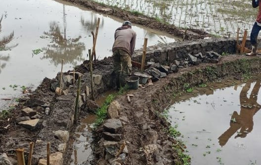 Lanjut Azis, hari ini kami melaksanakan pekerjaan di saluran irigasi pasir ipis yang berlokasi di kampung anggaraja kedusunan anggaraja ,irigasi pusatnya dari Dawuan yang mana mengairi kurang lebih 10 hektar persawahan dengan panjang pekerjaan kurang lebih 600 meter kiri kanan sesuai RAB , tinggi 50 centi meter sesuai juklak juknis nya dengan anggaran Rp .195.000.000 (Seratus sembilan puluh lima juta rupiah ) dan para pekerja nya pun para petani yang memiliki sawah di aliran irigasi tersebut.”Paparnya Selasa.(26/082025)