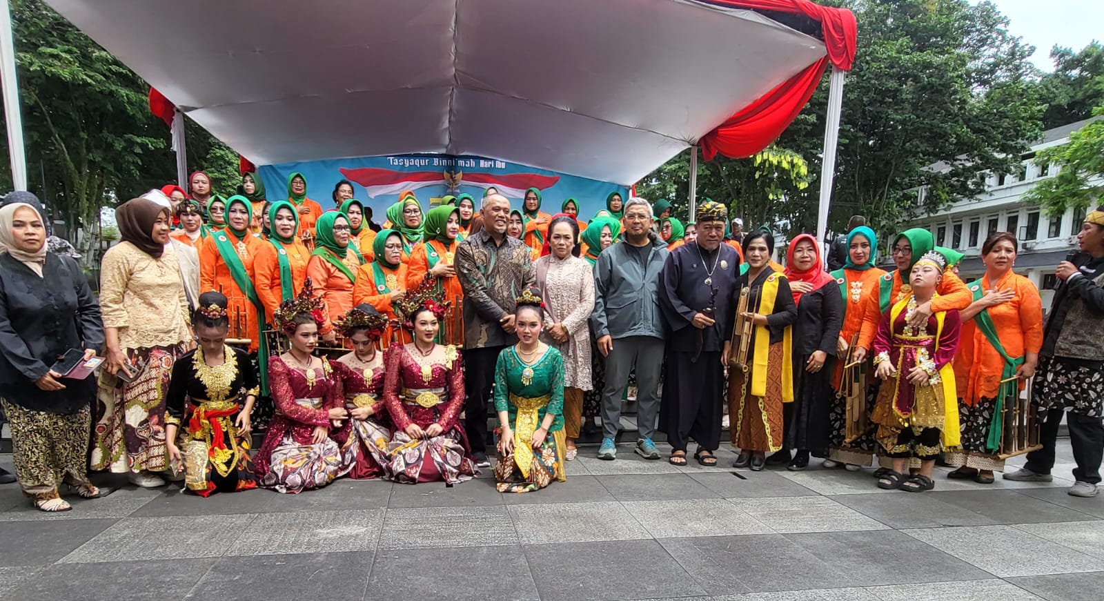 Acara “Tasyaqur bi ni’mah” digelar Perempuan Seni Budaya Nusantara (PSBN) dengan Pembina Hj. Ida Rachmawati,  dalam rangka memperingati Hari Ibu ke 96 dibuka pukul 10.00 pagi di halaman Balai Kota Bandung, Jl Wastukenca, Sabtu (18/01/2025).